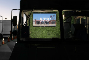 Nina Sarnelle’s piece Sound for the long hole (2018) also attempts to make the scale of oil production less abstract. For her new work, she researched a hidden oil drilling site on Washington Boulevard, one block from where she resides. This lot, concealed from view by a solid topiary wall, inspired a performance and a video and sculptural installation in the front driving cabin of the gallery truck. Using publicly available data, Sarnelle discovered the depth of one well to be 9,514ft. The work aims to make this depth comprehensible, and uses it to address the complex system that produced this “long hole,” from engineering to landscaping choices. For the performance, Sarnelle wears a costume that mimics the topiary, and performs a 40-minute music composition that addresses the urban legacy of oil drilling in LA, a Ross Dress for Less on Fairfax that exploded in 1985, and her own gastro endoscopy. A 9,514-foot-long pile of twine appears in the performance, installation, and video. The video captures a daylong shoot, where the twine snaked down Washington Boulevard for this exact length while attached to the Gas gallery truck. Rather than remaining in the abstraction of rarely read city infrastructure permits, the flat calculation of the oil well’s depth provides a chance to explore our personal and material relationship to oil production.