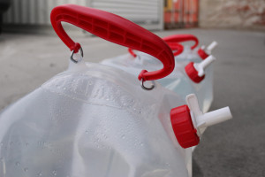 Gas-for-Water is a limited-edition collapsible water bottle emblazoned with an intentionally misleading logo stating its contents as “Gasoline.”