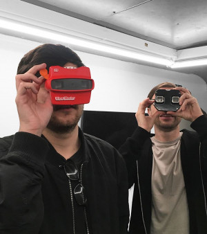 Other works in the exhibition likewise consider the limitations and failures of language to link us through our tools. Sophia Le Fraga and Rindon Johnson’s Not Sorry (2014–15) combines Le Fraga’s poetry with Johnson’s snapshots in the form of a View-Master. An analog film of sorts collaboratively produced after the artists’ own breakup, the format of a stereoscopic toy intentionally requires a solitary viewer to flip through the slides. Punctuated by the everyday shorthand used in text and direct messaging, Le Fraga’s poetry functions as subtitles throughout.